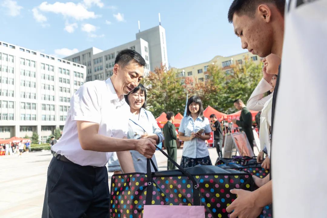 学校领导为新生发放暖心大礼包
