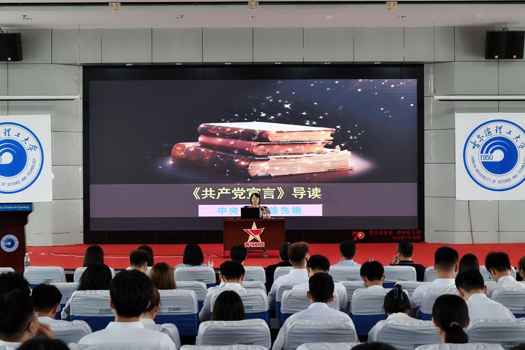 开班仪式后,徐先艳讲授开班第一课《共产党宣言》导读。她以党的二十大报告为切入点,从习近平总书记“构建人类命运共同体”思想引入,将原著与世界史、党史结合,带领学员回顾1848年发表至今的世界历史进程,尤其是党的十八大以来我国取得的伟大成就,为世界发展提供中国智慧、中国方案。讲座结束后,徐老师与师生亲切交流,她建议学员们反复研读《共产党宣言》,熟练掌握马克思主义立场、观点、方法,不断提高马克思主义理论素养。