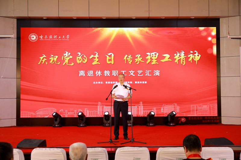 文艺汇演开始前,赵琳代表学校党委表达了对每一位老党员和退休教职工的关心、关怀、关爱。他简要回顾了学校的发展历史,向广大离退休老同志通报了学校近年来取得的优异成绩。在几代哈理工人的共同努力下,学校从小到大、由弱变强,始终扎根龙江沃土,矢志艰苦奋斗,深耕机电行业,见证了各位老同志筚路蓝缕、薪火相传、砥砺前行的铿锵足迹,同时见证了大家无悔青春和默默无闻的奉献。他代表学校党委向“光荣在党50年”纪念章获得者、各位老党员和老同志致以崇高的敬意和诚挚的祝贺,同时向所有的离退休老同志表示衷心的感谢。