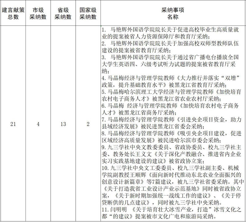 2023年21项建言献策成果被采纳:国家级采纳2项、省级采纳13项、市级采纳4项