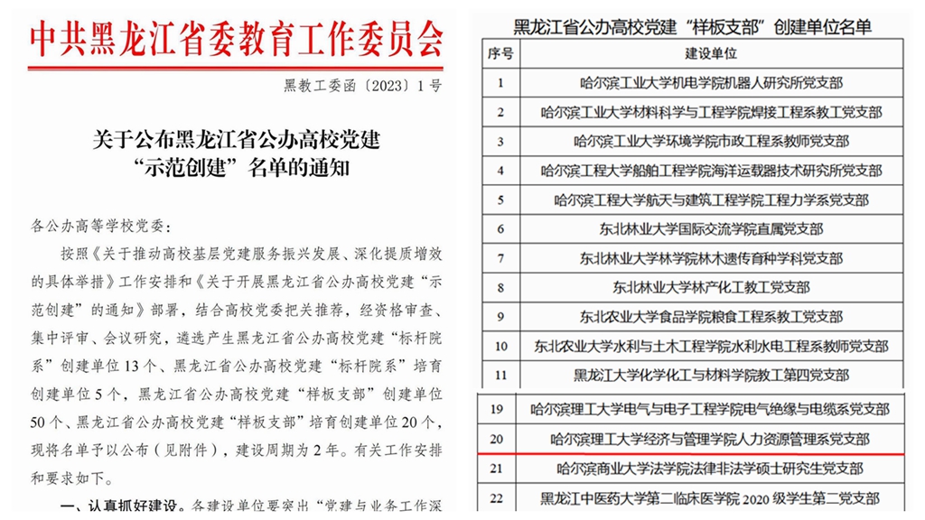 人资系党支部获批黑龙江省首批公办高校党建工作“样板支部”创建单位