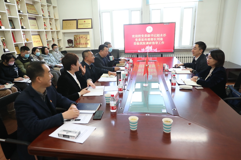 党委宣传部部长刘迪从加大决策咨询信息报送、加强理论宣传、搭建学术共建平台等方面对马克思主义学院建设提出指导性意见。