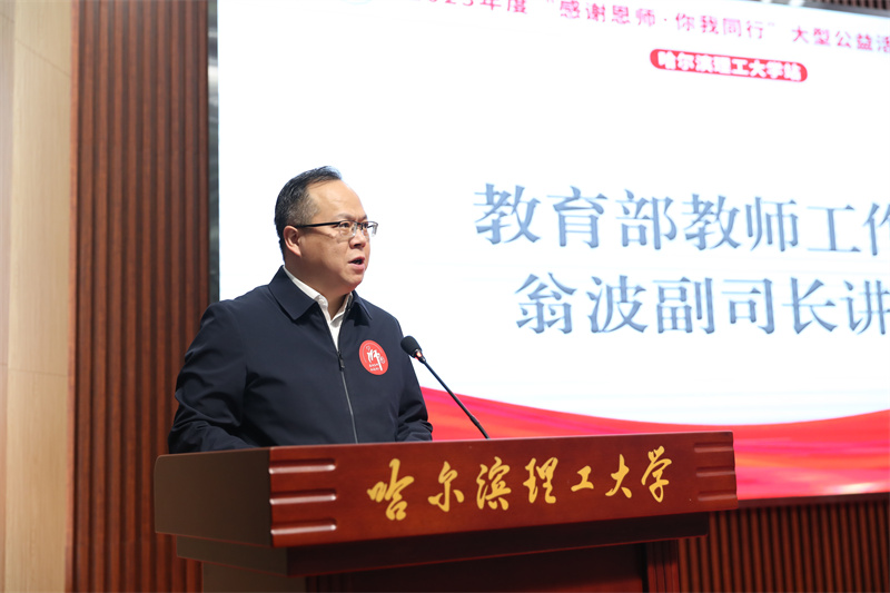 为进一步贯彻落实习近平总书记关于教育的重要论述,落实中共中央、国务院关于教育工作的战略部署,在教育部教师工作司、思想政治工作司指导下,由中国教师发展基金会、中国教育发展基金会主办,《教学考试》杂志社和哈尔滨理工大学承办的2023年度“感谢恩师·你我同行”大型公益活动年度总结暨动员会在教学主楼五楼报告厅举办。