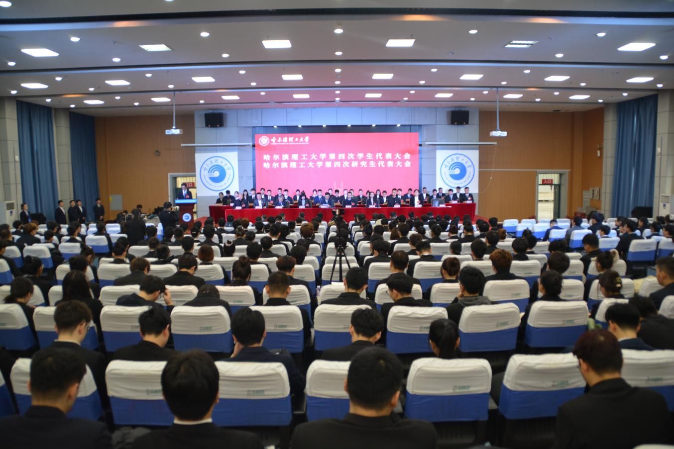 11月18日上午9时,在雄壮的国歌声中,哈尔滨理工大学第四次学生代表大会暨第四次研究生代表大会开幕。校党委副书记赵水杉,省学联驻会主席,组织部、宣传部、学生工作部、团委、教务处、保卫处、体育教学部负责人或派代表出席大会开幕式。各学院党委副书记、团委书记、学生会秘书长和459名学代会代表、研代会代表参加大会,荣成学院线上参会。