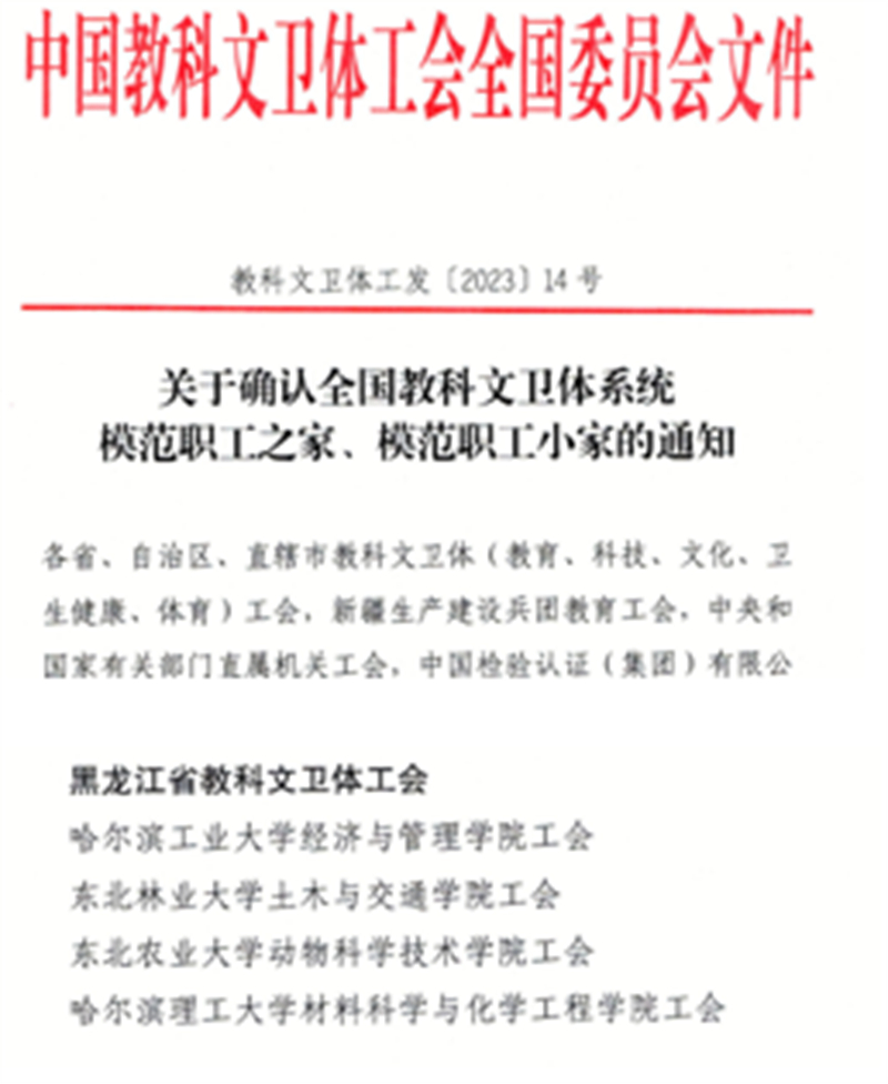学院工会获得全国教科文卫体系统模范职工小家荣誉称号
