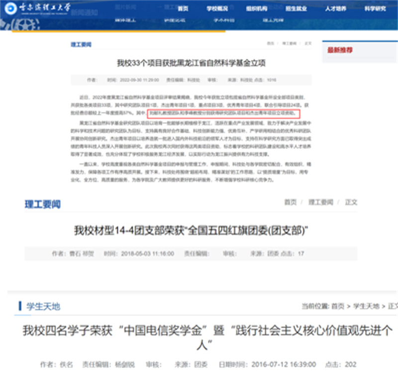 爱岗敬业,强化服务,材化人永远在路上。材化学院党委大力推进课程思政建设,打造“三全育人”格局。25%左右的学生培养成为积极分子。五年来,指导学生参加科创项目200余项,培养见习铸造工程师和见习材料热处理工程师109人,参加各类竞赛1500余人次,获国家级以上奖项21项、其他奖项100余项。学生科研成果11次被省电视台等媒体报道。获团中央“践行社会主义核心价值观示范团支部”、全国高校“活力团支部”、“全国五四红旗团支部”、“中国大学生自强之星”提名奖、“黑龙江省大学生年度人物”、“黑龙江省优秀青年志愿服务集体”等荣誉称号。向社会输送3万余名毕业生,两名本科毕业生当选为中国科学院院士。