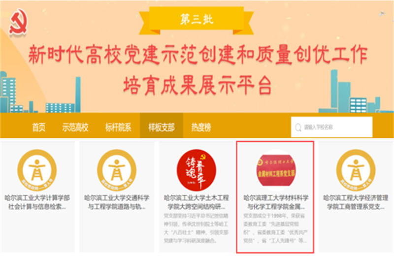 学院金属材料工程党支部荣获第三批“全国党建样板支部”荣誉称号