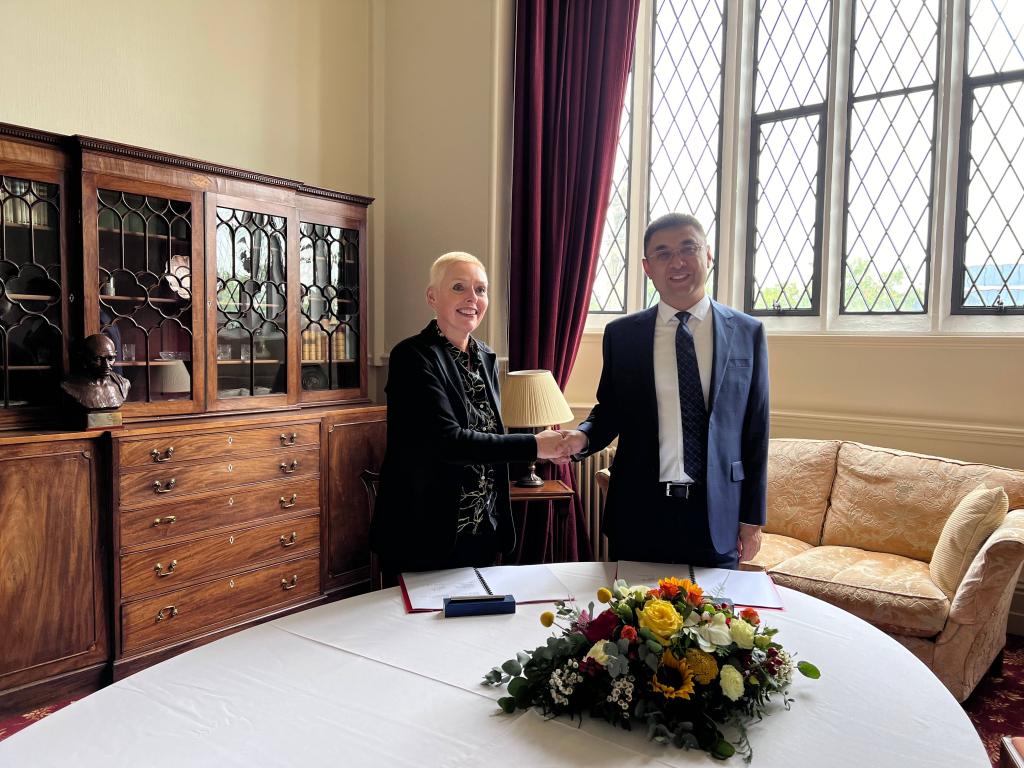 在英国贝尔法斯特女王大学,代表团首先与学校国际合作副校长Margaret Topping、艺术人文和社会科学学部国际合作院长Richard Collins进行了会谈。副校长Margaret Topping表示非常欢迎哈尔滨理工大学代表团访问女王大学,愿以双方优势学科和专业领域为基础进一步挖掘合作潜力,推动两校间更广泛的合作交流。校长刘侠表示,女王大学在北爱尔兰久负盛名,哈尔滨理工大学将秉持“携手并进、合作共赢”理念,进一步深化学习互鉴,拓展合作领域,实现优势互补,推动两校全方位交流合作。通过双方介绍和深入了解,两校在硕士双学位项目、博士研究生联合培养、教师访学研修、联合科学研究等方面合作达成一致。随后,校长刘侠与副校长Margaret Topping共同签署了校际合作协议。