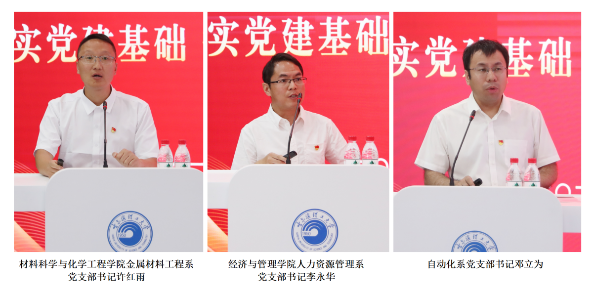 会上,由学校党委常委、组织部部长付尧领誓,全体党员重温了入党誓词。学校党委常委、机关党委书记姜国玉,机械学院党委书记姜彬,电气学院党委书记单鹂娜和材化学院金属材料工程系党支部书记许红雨、经管学院人力资源管理系党支部书记李永华、自动化学院自动化系党支部书记邓立为等全国或全省党建“示范创建”单位代表分别围绕党建引领审核评估、学科建设、巡视整改、党纪学习教育、有组织科研攻关等做了交流发言。