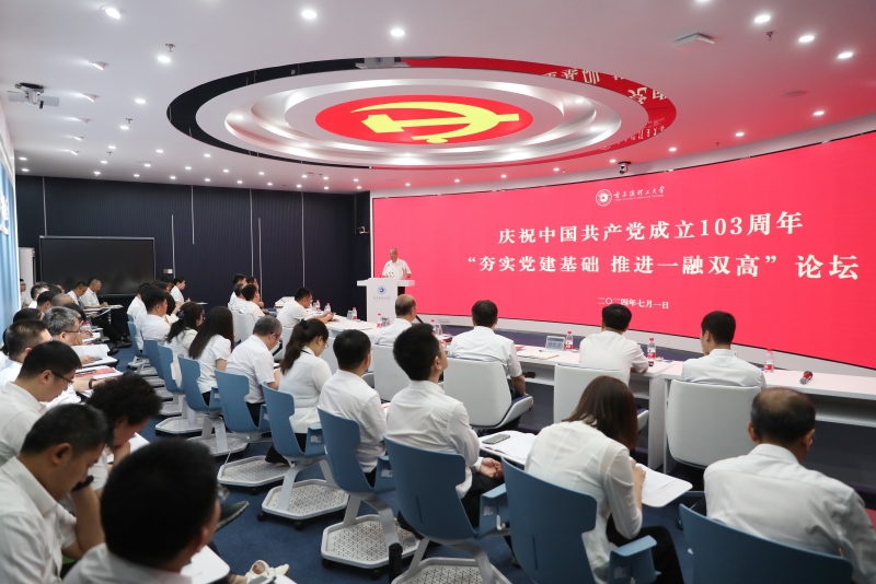 为庆祝中国共产党成立103周年,进一步促进学校党建工作全面提质增效,以高质量党建引领学校事业高质量发展,7月1日上午,学校在教学主楼智慧校园一体化空间举办“夯实党建基础 推进一融双高”论坛。学校党委书记赵琳,校长刘侠,党委副书记郭加利、赵水杉,纪委书记、监察专员孙树海,副校长臧永军、杨忠学、杜军、林屹出席会议,各相关党政职能部门负责人、各基层党委书记和部分党支部书记代表参加会议。会议由学校党委副书记郭加利主持。
