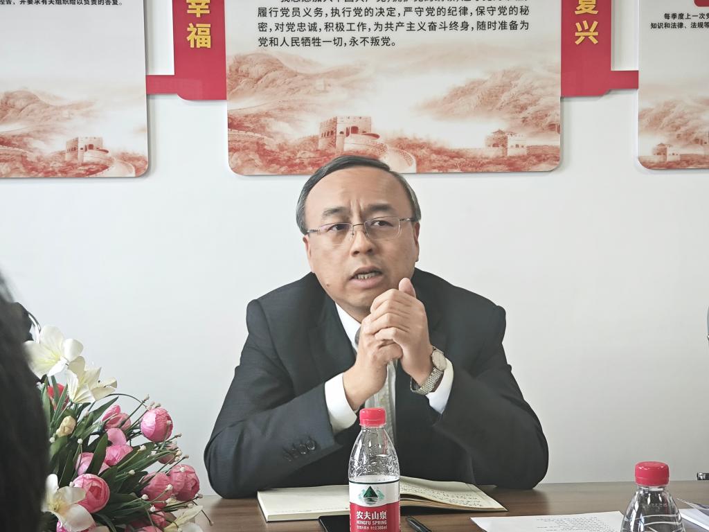 在化工楼413室,臧永军同学院领导班子、各系(实验中心)主任、党支部书记座谈交流。臧永军强调,学院广大党员要认真贯彻落实习近平总书记关于党纪学习教育的重要指示,将党纪学习教育、落实学校巡视整改、师德师风建设同学院的中心工作紧密结合起来,同题共答。学院是学校发展的主体,在学校党委的领导下,要积极发挥学院特色和优势,重视师资队伍建设,特别要高度重视青年教师发展,创造有利环境让青年才俊快速成长。臧永军指出,学校巡视整改和本科教育教学审核评估是当前学校最重要的工作,思想上要高度重视、行动上要高度自觉,以本为本,坚持问题导向,排查负面清单,扬长项补短板,将巡视整改落实到位,完善教育教学质量保障体系,以高度负责任的态度向学校交出一份满意的答卷。