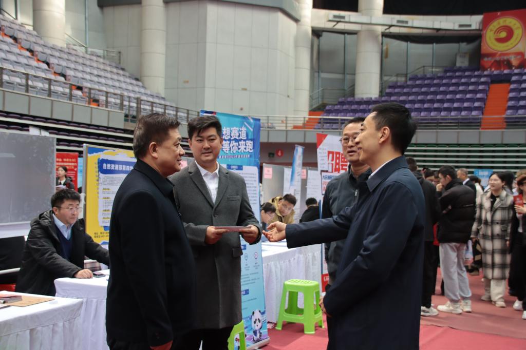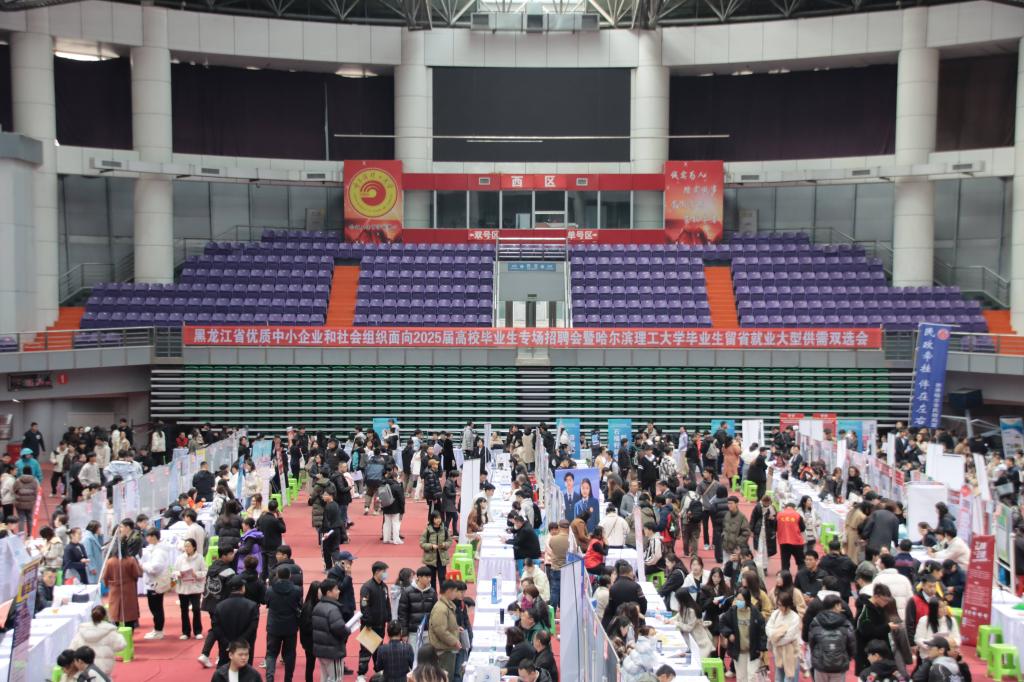 为深入贯彻党的二十届三中全会和全国教育大会精神,落实教育部和省委省政府关于促进高校毕业生就业工作部署,大力促进2025届毕业生留省就业,10月26日上午,由省工信厅、省教育厅、省民政厅联合主办,我校承办的黑龙江省优质中小企业和社会组织面向2025届高校毕业生专场招聘会暨“情系黑土地 就业在龙江”哈尔滨理工大学毕业生留省就业大型供需双选会在学校西校区体育馆成功举办。省工信厅一级巡视员曹虎,省教育厅二级巡视员杨德斌,省民政厅副厅长张跃文、王连波在学校党委副书记赵水杉陪同下深入双选会现场与用人单位代表和求职学生进行深入交流,了解用人单位的人才需求和招聘情况,细致询问毕业生的就业意向和求职进展。省教育厅高校学生处、省工信厅融资服务与培训处、省民政厅社会组织管理局、省大学生就业创业指导中心、省民营经济发展促进会相关负责同志参加活动。
