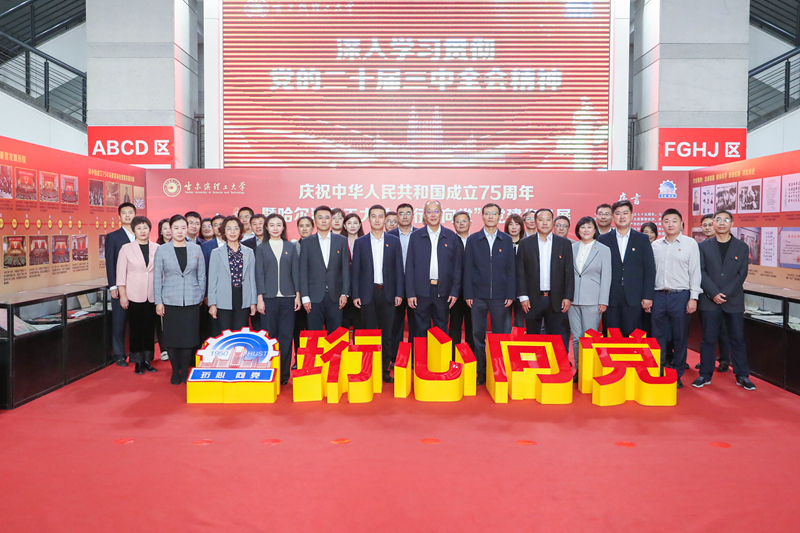 为庆祝中华人民共和国成立75周年,深入学习贯彻习近平新时代中国特色社会主义思想和党的二十届三中全会精神,贯彻落实9月27日省委书记、省人大常委会主任许勤同志在我校讲授思政课时关于加强党的建设的指示精神,9月29日,学校党委组织部、党委宣传部、党委学生工作部、团委、工会、离退休党委在西校区教学主楼一楼大厅联合举办庆祝中华人民共和国成立75周年暨“珩心向党”党建作品展。校党委书记赵琳出席开展仪式并致辞,基层党委书记、相关职能部门干部、党支部书记和党员代表参加开展仪式,仪式由校党委副书记、工会主席郭加利主持。