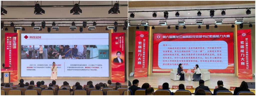 9月24日至26日,黑龙江省委教育工委主办的第六届高校党支部书记素质能力大赛成功举办,我校电气与电子工程学院博士研究生党支部书记张晶荣获大学生党支部书记赛道二等奖,外国语学院英语系教师党支部书记张春烨荣获“双带头人”教师党支部书记赛道优秀奖。学校党委组织部带队到现场参加并观摩比赛,全校基层党组织书记和党务工作者通过网络直播在线观看决赛实况。