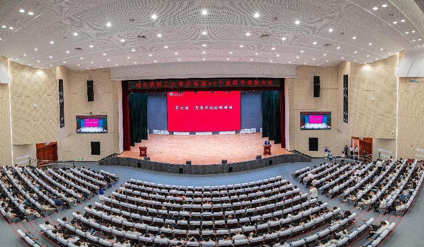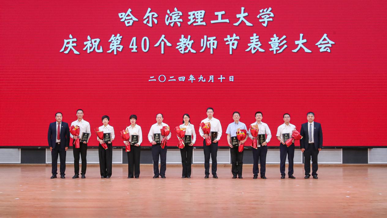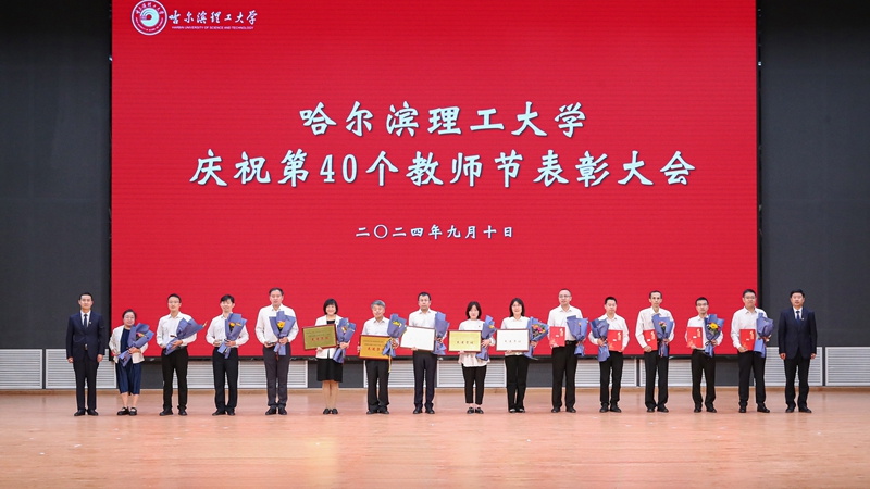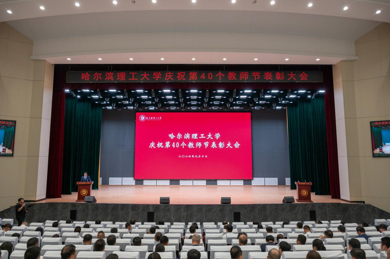 为大力弘扬教育家精神,表彰学校在教学科研、师德建设等工作中涌现出的先进集体和个人,营造浓厚的尊师重教氛围,9月10日下午,哈尔滨理工大学在西校区大学生活动中心召开庆祝第40个教师节表彰大会。党委书记赵琳,党委副书记、校长刘侠,纪委书记、监察专员孙树海,副校长杨忠学、林屹出席会议;全校中层干部,离退休教师代表,受表彰教职工代表,党外人士代表,双代会代表,研究生导师代表,新入职教师代表,学代会代表,学生代表等出席大会。副校长臧永军、杜军赴威海校区为获奖教职工颁奖,威海校区师生干部于线上同步参会。会议由党委副书记、工会主席郭加利主持。