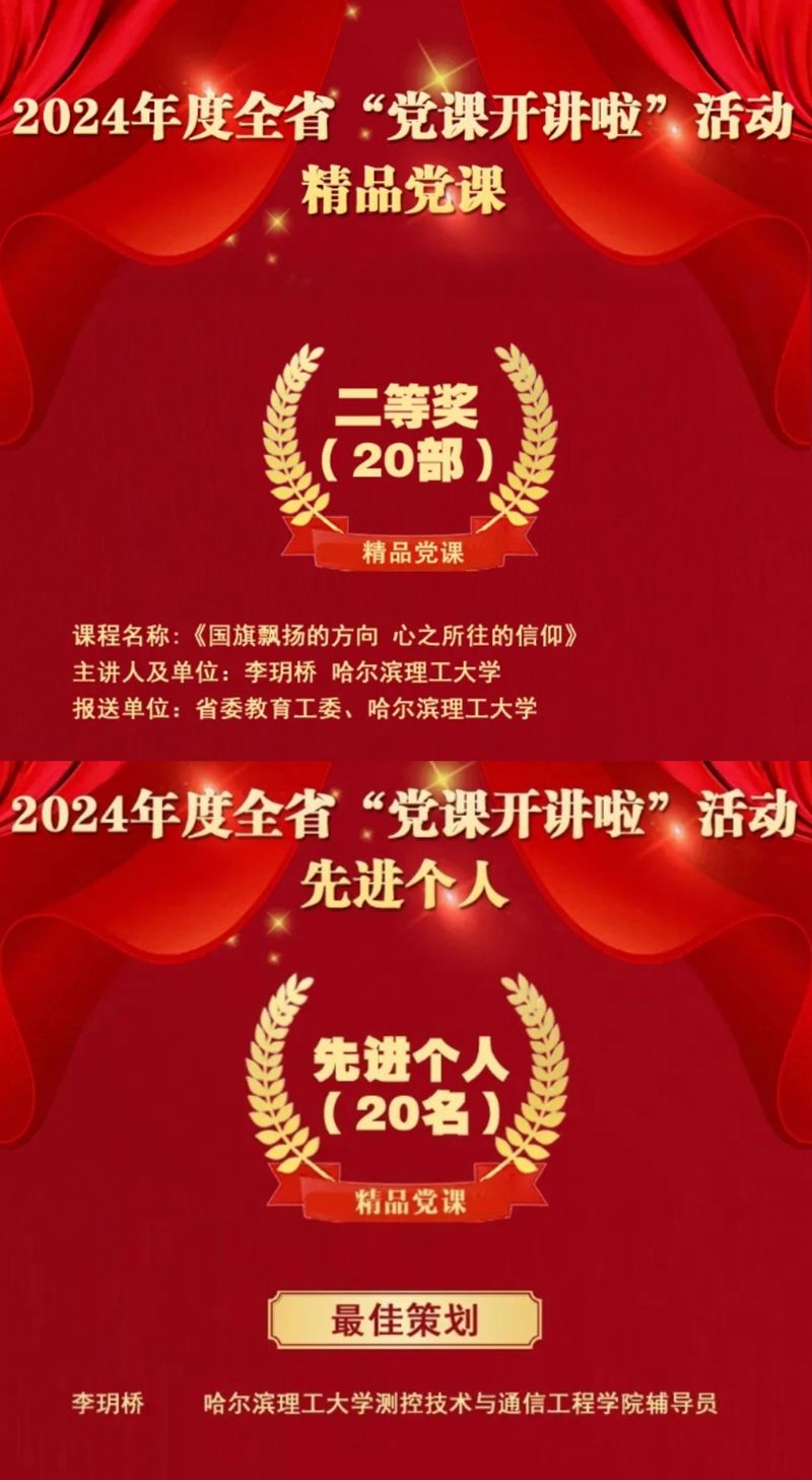 近日,黑龙江省委组织部公布了2024年度全省“党课开讲啦”活动的评选结果,我校申报的党课《国旗飘扬的方向 心之所往的信仰》荣获精品党课二等奖,党课主讲人获先进个人——最佳策划奖。这是自2019年全省“党课开讲啦”活动开展以来,我校获得的最佳成绩。