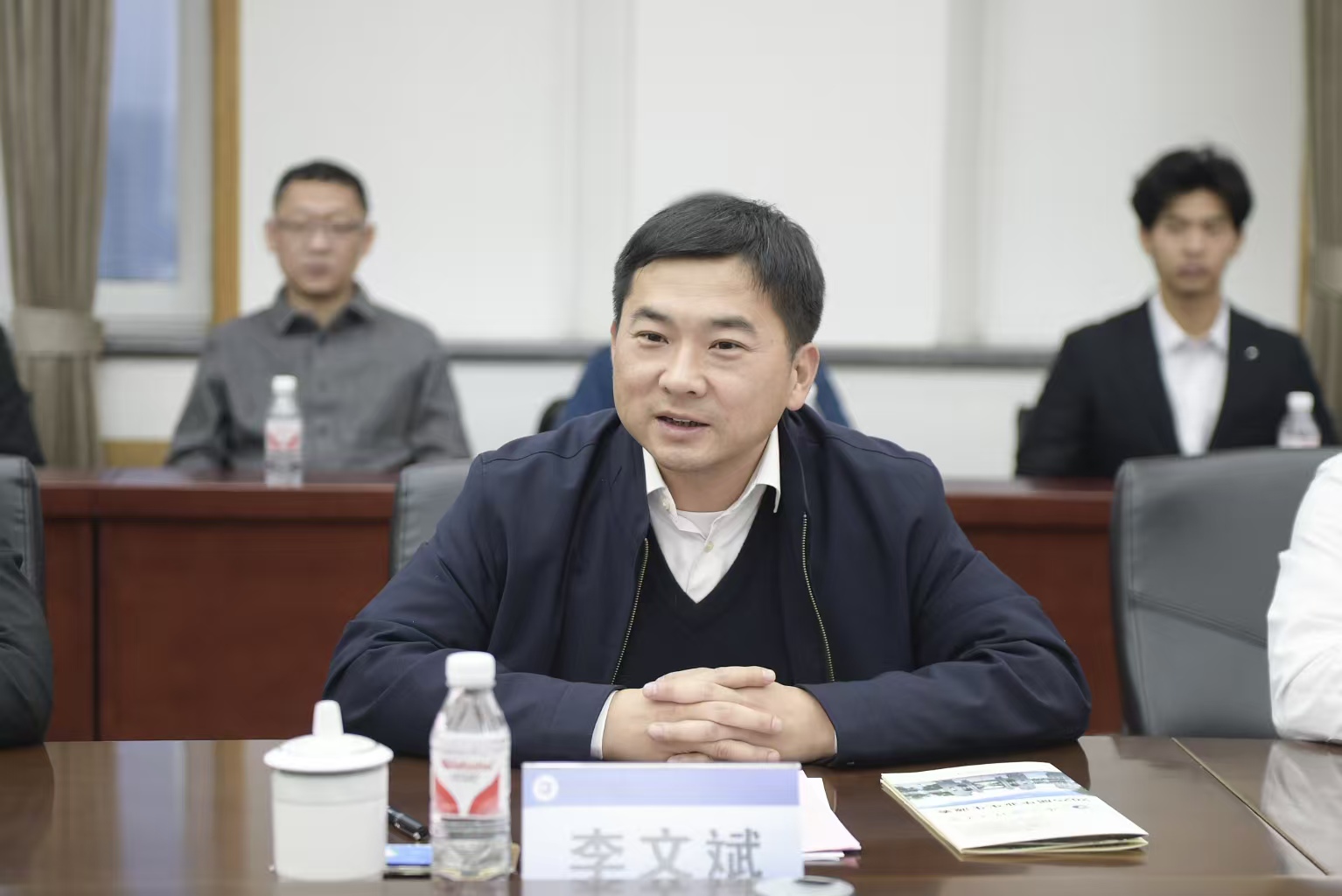 李文斌对学校的热情接待表示感谢,并从吴江开发区的产业经济格局和人才发展环境两个方面作了介绍。他表示,吴江开发区与哈尔滨理工大学往来密切,在人才培养、就业育人、科技创新、产学研合作等方面均有坚实的合作基础,吴江开发区正处于经济社会快速发展的关键时期,急需高校的人才支持和智力支撑,哈理工的学科优势与吴江产业发展方向契合度高,希望双方进一步“双向奔赴”,推动学校的人才、科研、资源优势与吴江开发区的产业优势紧密结合,共同打造校地合作示范样板。
