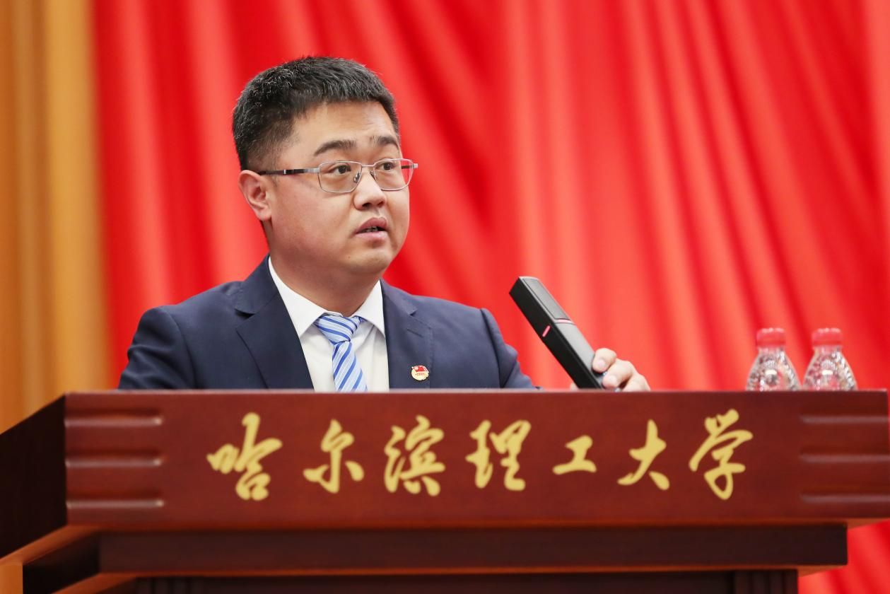 校工会副主席王立明代表学校群团组织致辞,哈尔滨工程大学团委书记郝琛代表兄弟高校团组织致贺词。