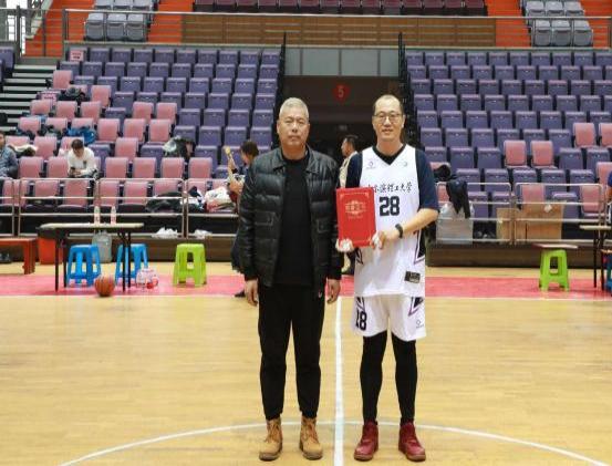 校工会教职工文体活动负责人马宇宁和首届篮球协会会长范洪涛