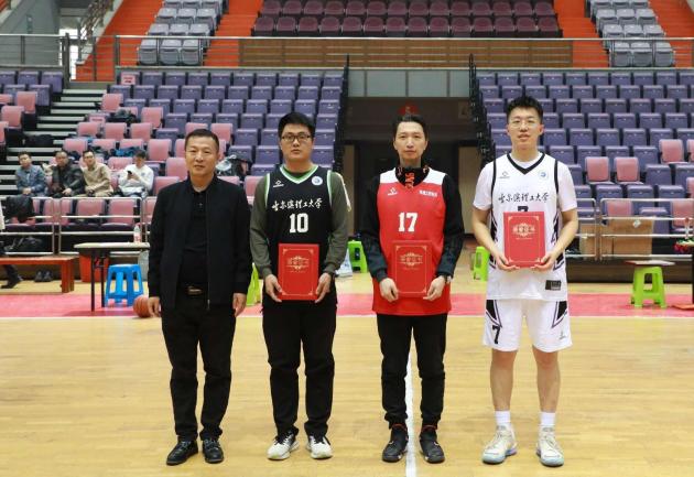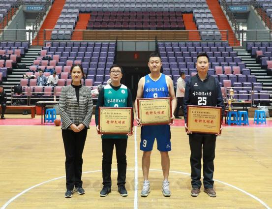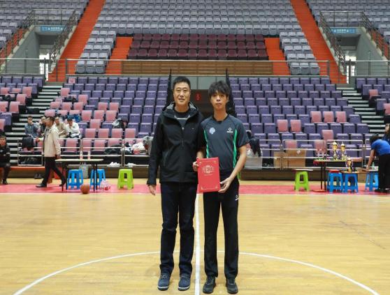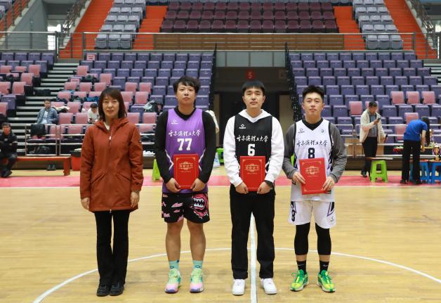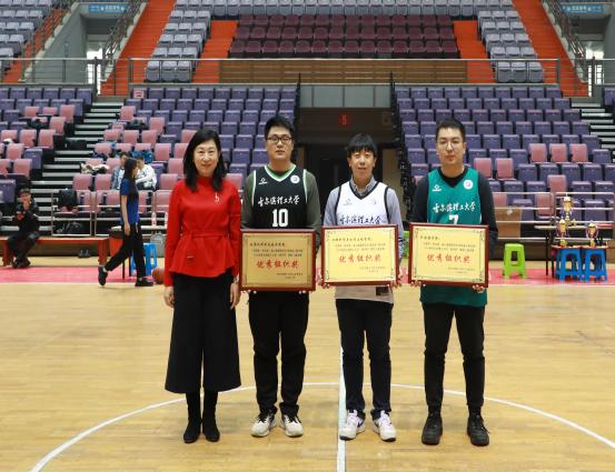 体育教学部副主任杨喜君为总决赛MVP获得者颁奖