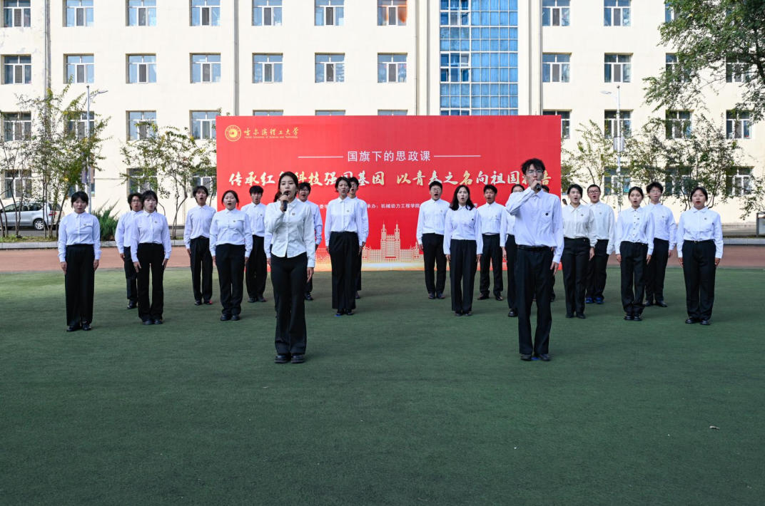上午8时,升旗仪式在肃穆的氛围中拉开帷幕。国旗护卫队迈着铿锵有力的步伐,护送鲜艳的五星红旗步入仪式现场。伴随着激昂的《义勇军进行曲》,五星红旗冉冉升起,全体师生庄严肃立,面向国旗行注目礼,齐声高唱国歌,家国情怀与使命担当在每一位师生心中激荡。升旗礼毕,机械动力工程学院党委副书记张洪智作题为“传承红色科技强国基因,以青春之名向祖国报告”的微思政课。他以学校75年来与共和国同频共振的奋斗历程为主线,深情回顾了以王大珩先生为代表的老一辈科学家“国之所需,吾之所向”的崇高情怀,生动刻画了24万哈理工校友在科技前沿勇攀高峰、在产业一线开拓创新、在军旅边疆默默奉献的报国群像,深刻阐释了哈理工“红色科技强国基因”的精神内核,激励新生传承“大珩精神”,将个人理想融入国家发展伟业,以奋斗书写青春答卷,在强国建设、民族复兴的征程中镌刻下哈理工人的忠诚与担当。由20名学生代表组成的团队,精神饱满、声情并茂地朗诵了《以青春之我,铸科技强国》,以铿锵有力的誓言诠释了新时代青年的使命担当。活动的最后,全体师生手持国旗,齐声高唱《歌唱祖国》,嘹亮的歌声在晨光中回荡,饱含着理工师生对祖国的无限赤诚与热爱,共同祝愿伟大的祖国76周年华诞,生日快乐,繁荣昌盛!