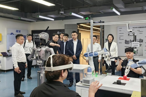调研越疆科技期间,副总经理、全球教育负责人王星,副总经理、研发总监姜宇,国内教育事业部副总经理李晓亮等公司高层热情接待调研团。在王星、姜宇等陪同下,调研组先后参观了越疆科技的研发中心、产业数采中心等。随后,双方围绕深化产教融合、共育未来人才等议题开展了座谈交流。