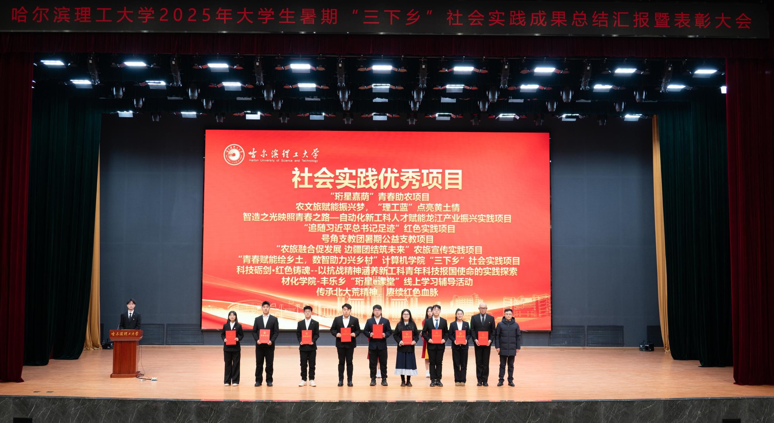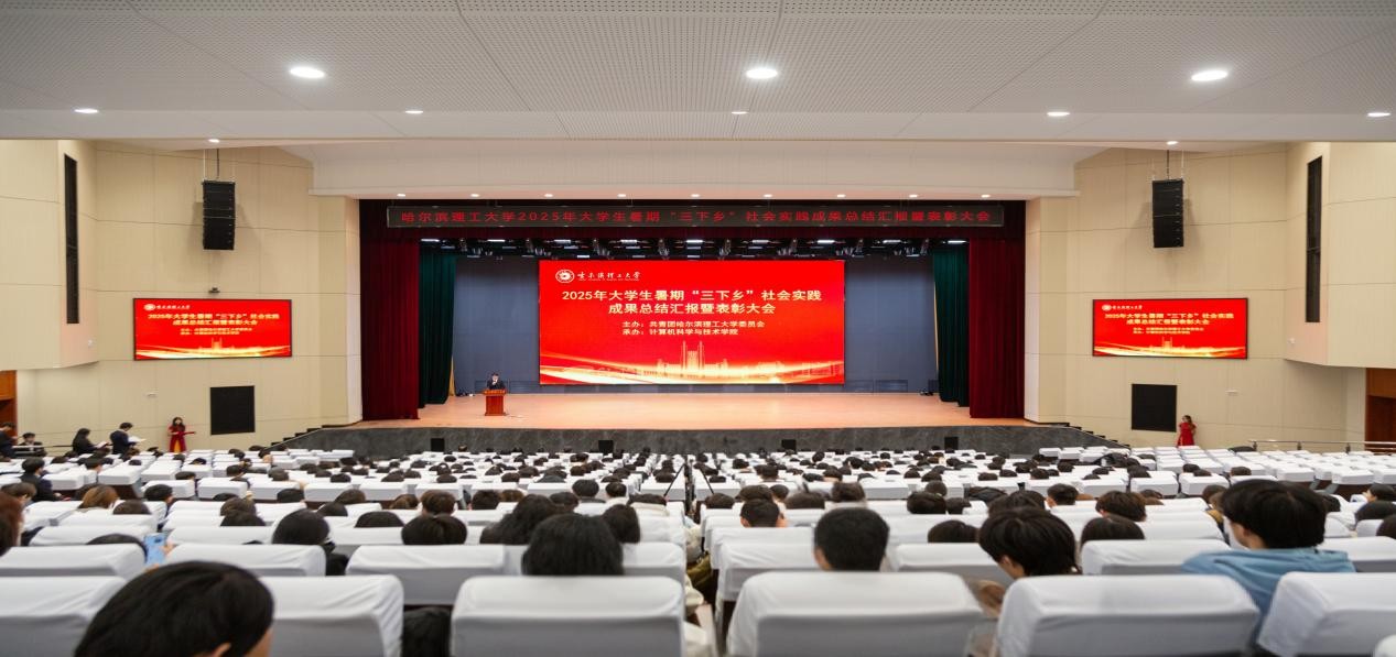 为深入学习贯彻习近平新时代中国特色社会主义思想和党的二十届四中全会精神,全面落实立德树人根本任务,强化典型示范引领、提升实践育人实效,引导和帮助青年学生在社会课堂中受教育、长才干、做贡献,11月28日,学校举行2025年大学生暑期“三下乡”社会实践成果汇报暨表彰大会。本次大会由校团委主办,计算机学院团委承办。学校党委副书记赵水杉,党委宣传部、党委学生工作部、团委负责人,自动化学院、计算机科学与技术学院、经济与管理学院党委负责人,各学院党委副书记、团委书记、实践团指导教师和400余名学生代表参会。