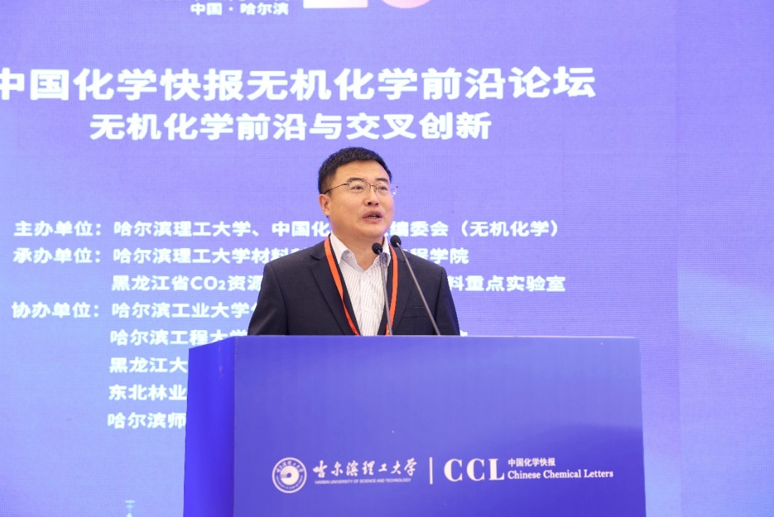 黑龙江大学付宏刚教授代表在哈高校致辞,对论坛的召开表示祝贺,并强调加强学术合作、推动无机化学前沿交叉的重要性,同时希望与会专家能够进一步关注和支持黑龙江高校的发展建设。