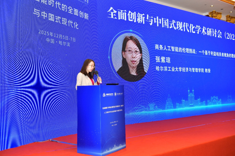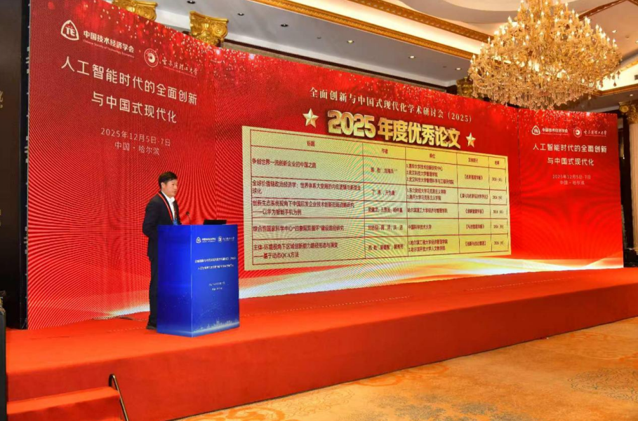 为学习贯彻习近平经济思想和习近平总书记关于科技创新的重要论述,践行党中央提出的“构建支持全面创新体制机制”的战略要求,由哈尔滨理工大学、中国技术经济学会技术管理专委会、中国技术经济学会冶金技术经济分会主办,哈尔滨理工大学经济与管理学院、清华大学技术创新研究中心承办的“全面创新与中国式现代化”学术研讨会于2025年12月5日至7日在黑龙江省哈尔滨市召开。会议以“人工智能时代的全面创新与中国式现代化”为主题,围绕全面创新管理的理论深化与实践路径展开深入研讨,为提升国家创新体系整体效能凝聚智慧、贡献力量。来自全国高校、科研院所、产业界的专家学者齐聚哈尔滨,共商全面创新管理发展大计。