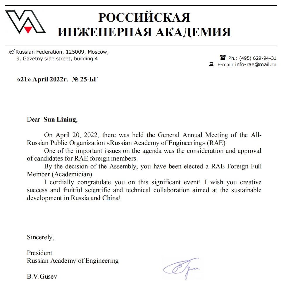 2022年4-6月,“头雁”团队负责人蔡蔚教授、兼职博士生导师申泽骧教授、兼职博士生导师孙立宁教授等3人先后当选俄罗斯工程院外籍院士。