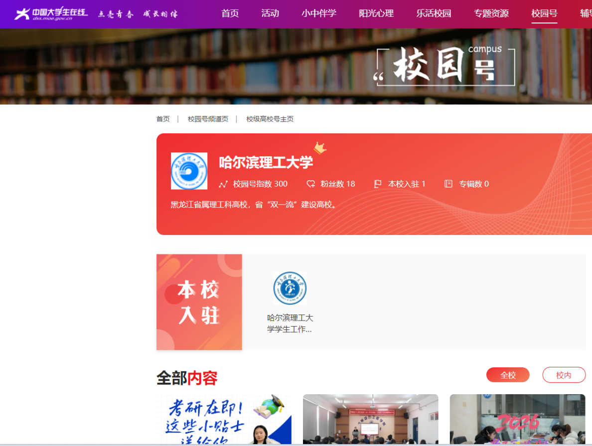 学校入驻教育部“中国大学生在线”等国家级网络平台
