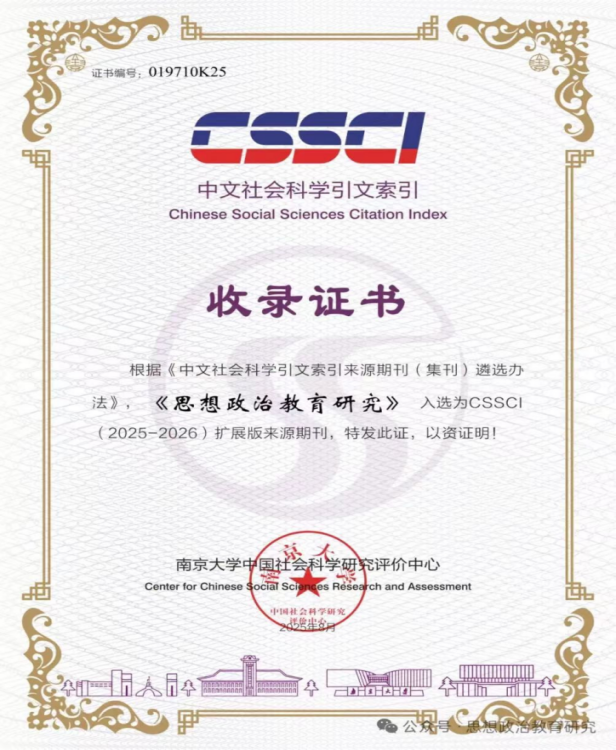 《思想政治教育研究》入选CSSCI(2025—2026)扩展版来源期刊