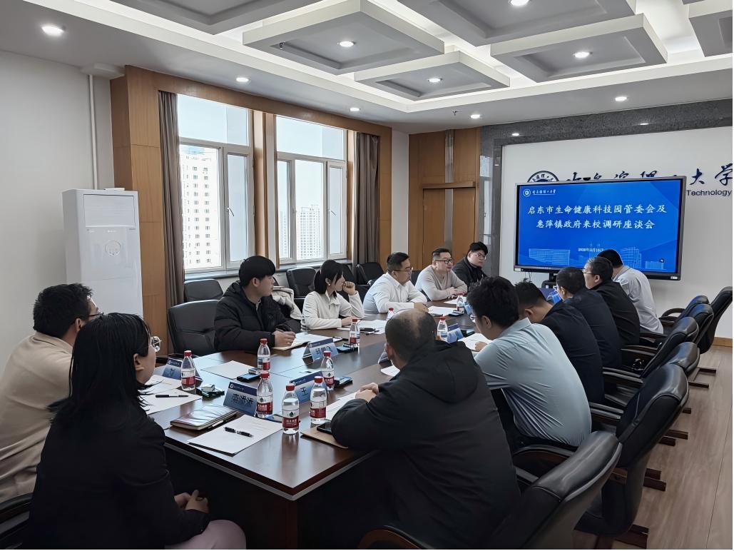 为深化政产学研合作,促进成果转化和人才交流。3月19日,江苏省启东市生命健康科技园管委会党工委书记戎武、惠萍镇人民政府镇长苏俊等一行来校调研座谈,校长助理兼科技处处长江赛华出席会议,国家大学科技园管理办公室、科技处相关负责人,材化学院、机械学院、自动化学院相关教师参加会议。
