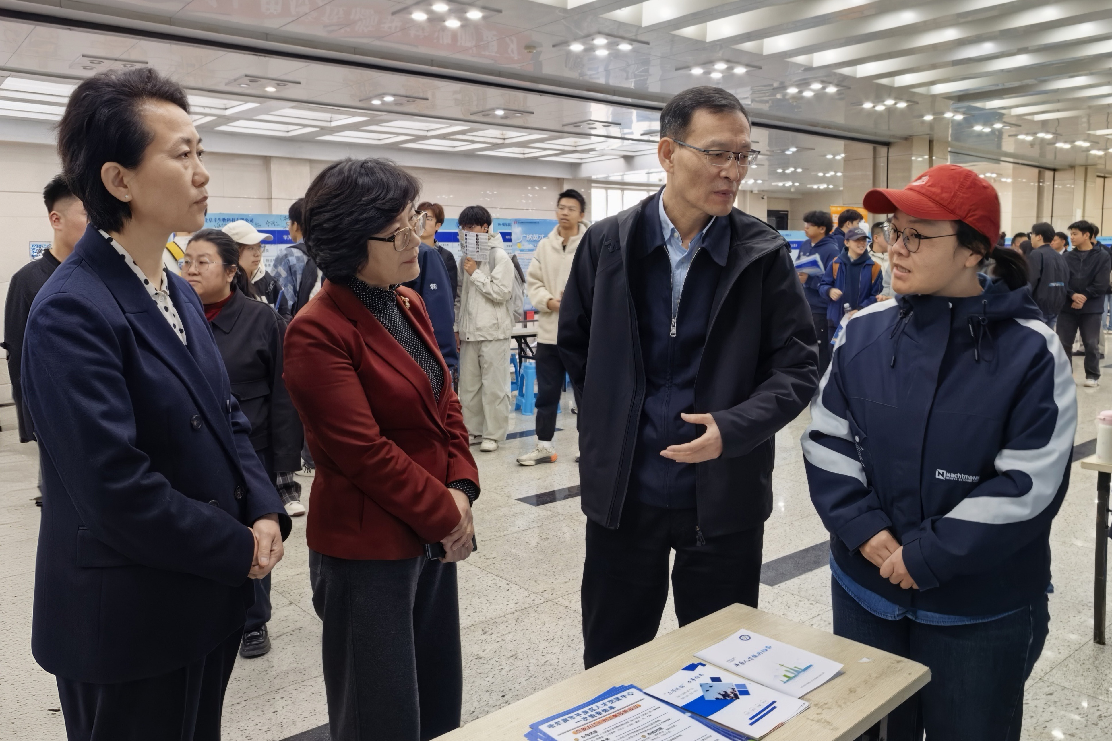 4月23日上午,2026年平房区春季校园行哈尔滨理工大学专场招聘会暨2026届毕业生计算机行业、理学类专场招聘会在我校成功举办。本次活动由哈尔滨理工大学和平房区联合承办。平房区委常委、组织部部长金海燕,区人力资源和社会保障局局长杨秀玲,区委组织部副部长、区公务员局局长刘爱霞及平房区相关部门负责人、重点企业负责人,学校党委副书记、工会主席郭加利,计算机科学与技术学院党委书记孙广路,理学院院长毕卉出席校地对接会并巡场招聘会。对接会由学校党委学生工作部部长戴湘竹主持。