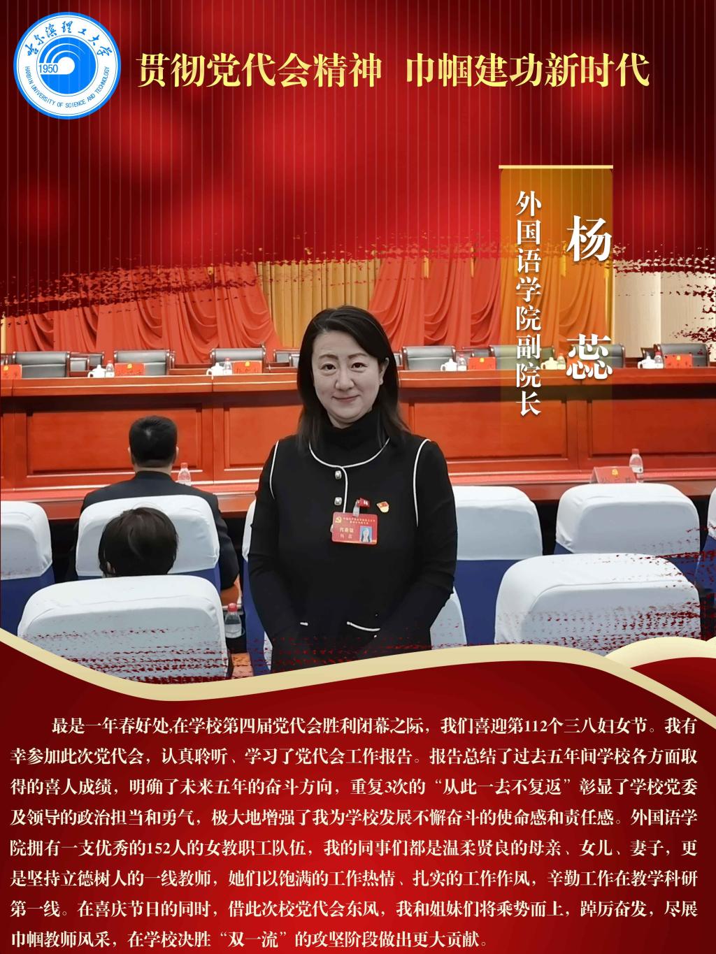 阳春三月,桃李争妍。为庆祝第112个“三八”国际劳动妇女节,充分展示我校女博士联谊会成员昂扬向上、奋发有为的巾帼风采,哈尔滨理工大学女博士联谊会组织开展“巾帼心向党 奋进新征程”共话心声活动,成员们纷纷表达对学校第四次党代会胜利召开的喜悦之情和贯彻落实第四次党代会精神的奋斗之心。活动引领全校广大女性师生巾帼心向党,激励全校女性师生以更加饱满的热情开创事业发展新局面,汇聚起全面建设特色鲜明的国内一流理工科大学的巾帼力量。