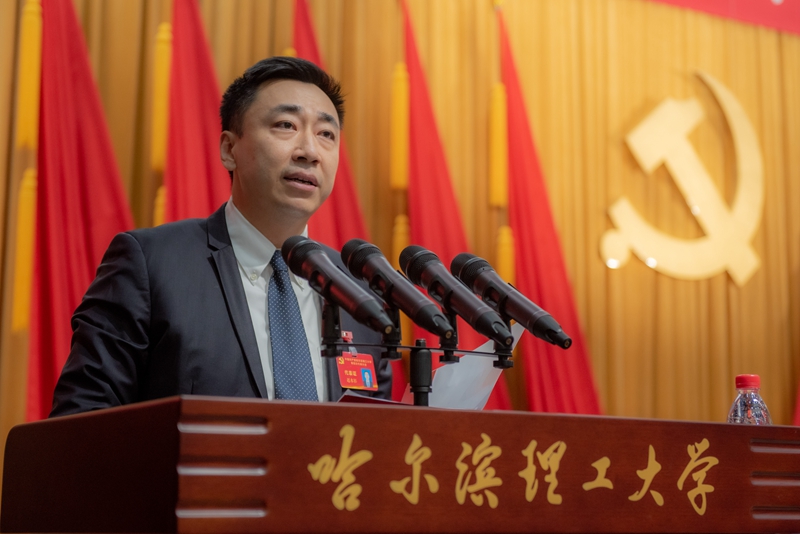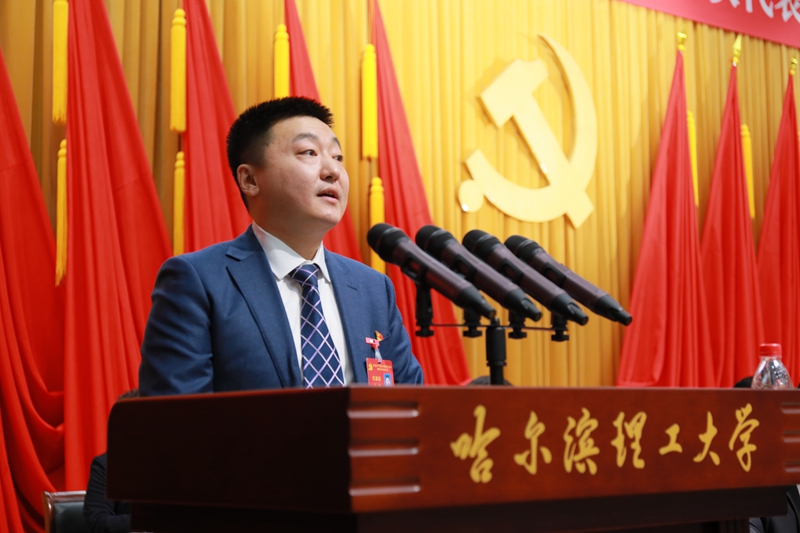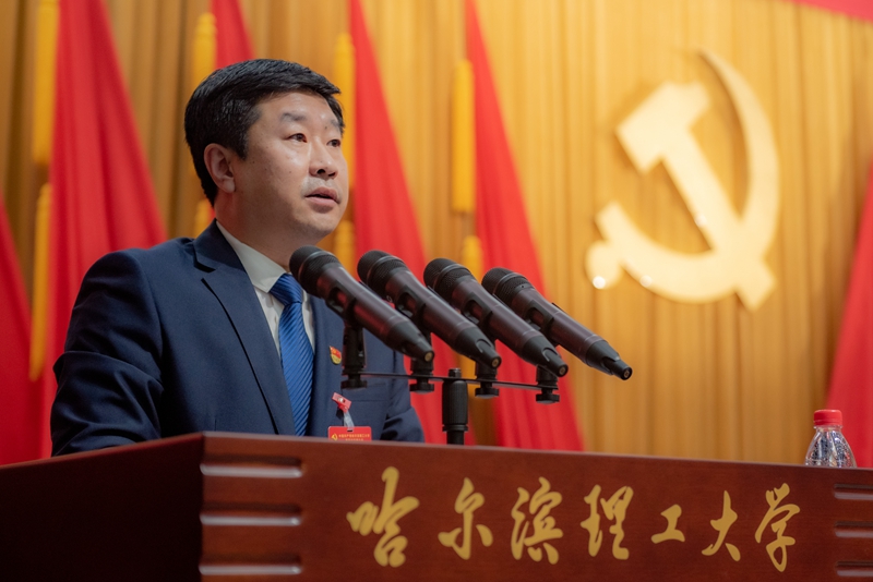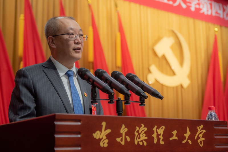林屹宣读《中共哈尔滨理工大学第四次代表大会关于中共哈尔滨理工大学第三届纪律检查委员会工作报告的决议》