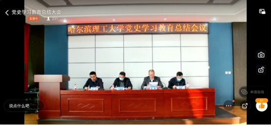 赵琳指出,学校党史学习教育推进过程中注重体现理工特色、打造理工亮点。坚持“谋”字为先,推动党史学习教育扎实开展,学校党委将党史学习教育作为贯穿全年工作的重大政治任务,与立德树人根本任务相结合,融入提升管党治党、办学治校能力全过程;坚持“学”字为要,推动党史学习知行合一,组织广大党员、干部和师生读原著、学原文、悟原理,切实用党的创新理论武装头脑、指导实践、推动工作;坚持“讲”字为促,助力党员干部学懂弄通,围绕伟大建党精神,结合龙江红色历史资源和校史资源,系统谋划各类宣讲主题,突出重点、全面覆盖;坚持“实”字为上,用心用情用力用智解决师生“急难愁盼”,充分调研师生迫切需求,学校“我为群众办实事”22项实践台账和基层党委148项“问题清单”全部清零销号;坚持“干”字为效,推进学校各项事业高质量发展“开新局”,学校党委坚持把开展党史学习教育与服务中心大局结合起来,同做好全年各项重点工作结合起来,科学谋划学校“十四五”规划,为党史学习教育交上了一份满意答卷。
