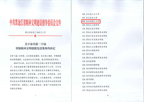 两届蝉联,再获殊荣!日前,中共黑龙江省精神文明建设指导委员会印发了《关于命名第二十届省级精神文明创建先进集体的决定》,我校获评“省级文明校园标兵”荣誉称号。这是继2019年我校被命名为“省级文明校园标兵”称号之后再次获此殊荣。