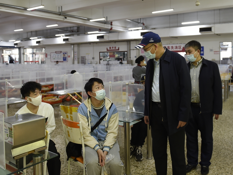 为进一步做好校园疫情防控工作,5月3-4日,校党委书记赵琳、校长刘侠、副校长杨忠学先后深入西区、南区校园,走访慰问师生并检查指导工作。其中,3日下午,赵琳、杨忠学先后到西区学生九公寓、一食堂、水果超市、快递服务中心等场所看望慰问师生;4日上午,校长刘侠来到南区大学生超市、快递服务中心、食堂、体育场等场所走访慰问。