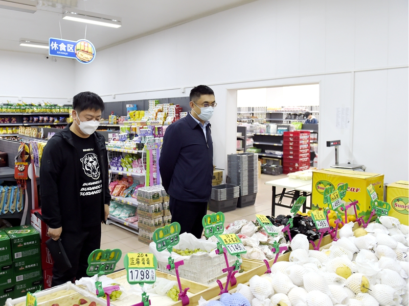 在校内商服,校领导详细了解进店扫码、测温、戴口罩情况、进货防疫消杀、错峰限流等方面情况,查看店内商品种类、价格、质量等,同时与进店购物学生交谈,听取学生的反馈意见。校领导强调,校内商服要始终坚持以服务学生为宗旨,重视学生多样化需求,不断创新服务理念、优化服务流程,保证商品质量,稳定商品价格,满足学生日常生活需要。