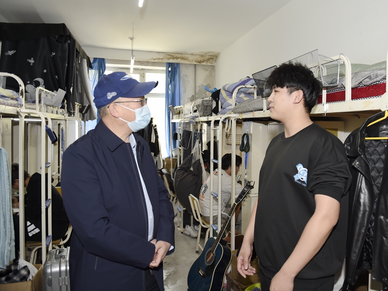 在西区九公寓,校领导听取学生工作部有关宿舍管理、消杀通风、心理健康教育开展等情况,查阅了公共区域消杀记录、外来人员登记簿等,与学院负责人、宿管人员、住校辅导员等亲切交流,对他们长期坚守、履职尽责表示肯定。校领导还深入学生宿舍,了解同学们的学习生活情况,听取他们的意见建议,鼓励同学们要合理规划疫情期间的学习生活,注重劳逸结合,积极参与户外活动,保持良好的精神状态。
