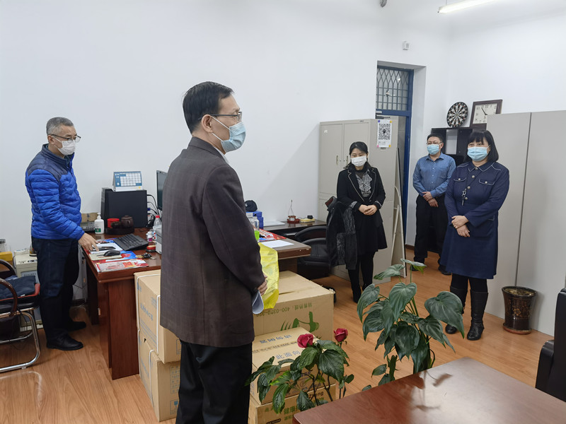 郭加利还深入走访慰问了思政科、资助科、日常管理科、武装部及民族办等科室的工作人员,他对全体学工人在这次疫情防控工作中表现出的特别能吃苦、特别能战斗,知苦不言苦、知难不畏难的精神表示敬佩和点赞。郭加利指出,疫情防控不容忽视,学生教育管理工作任务依然很重,他希望所有一线学工人员要提高政治站位,杜绝麻痹思想和松懈情绪,落实有关要求,强化阵地意识,严防死守,时刻保持“战时”状态,做到家与学校“两点一线”,要为学生负责、为家人负责、为自己负责。同时要认真研判下一阶段疫情防控工作的新风险,畅通学生反馈渠道,及时反映学生心声,及时传递学校呼声,以身作则起到带头作用,坚决守护好来之不易的抗疫成果,再接再厉,以必胜的信念打赢疫情防控阻击战。