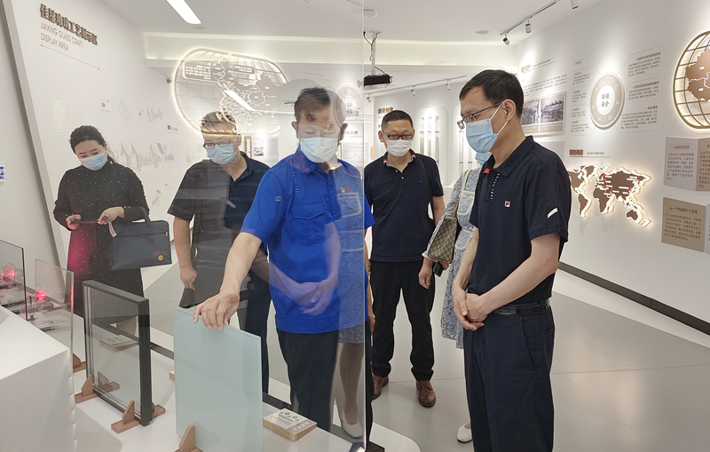 在佳木斯市中建材佳星玻璃黑龙江有限公司,公司副总经理商文库陪同郭加利一行参观了厂区浮法二线和企业文化展厅,全程观看了世界领先、国际一流的浮法玻璃二代技术保障生产的全过程。