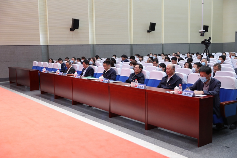 省委第十九巡回指导组成员张志群,全校处级干部、师生党员代表参加会议。荣成学院相关人员线上参会。(摄影:耿洪杰)