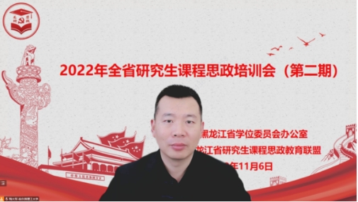 11月6日,由黑龙江省学位委员会办公室主办的2022年全省研究生导师课程思政培训会(第二期)成功举办,我校作为黑龙江省研究生课程思政教育联盟理事长单位承办本次培训。培训会由我校研究生处处长、省研究生课程思政教育联盟秘书长陶大军主持。