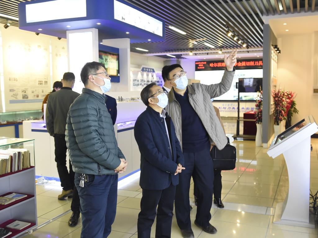 会谈结束后,双方举行了校企共建“大学生就业基地”授牌仪式。李鹏堂董事长一行参观了学校工程训练中心及金属切削刀具馆。