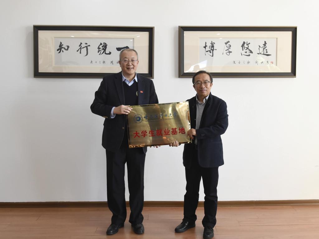 学校党委书记赵琳为校企共建“大学生就业基地”授牌