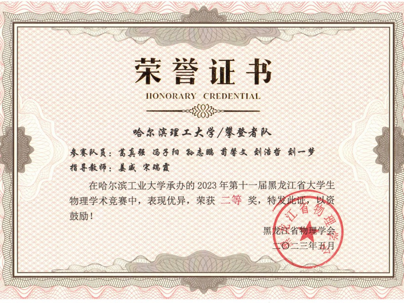 第十一届黑龙江省大学生物理学术竞赛二等奖