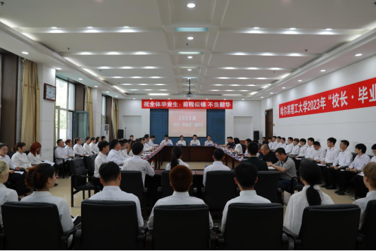 离歌渐起,夏风相送。6月15日上午,学校2023年“校长·毕业生”座谈会在西区一号楼第四会议室举行,校长刘侠与来自学校各专业的57名2023届毕业生代表亲切交流,他们之中有黑龙江省优秀毕业生代表,有扎根龙江、服务基层的学生骨干,有继续深造勇攀高峰的科研人才以及进入国家重点领域就业的优秀学子。校党委副书记赵水杉及相关职能部门负责同志参加座谈会,会议由学生工作部部长戴湘竹主持。