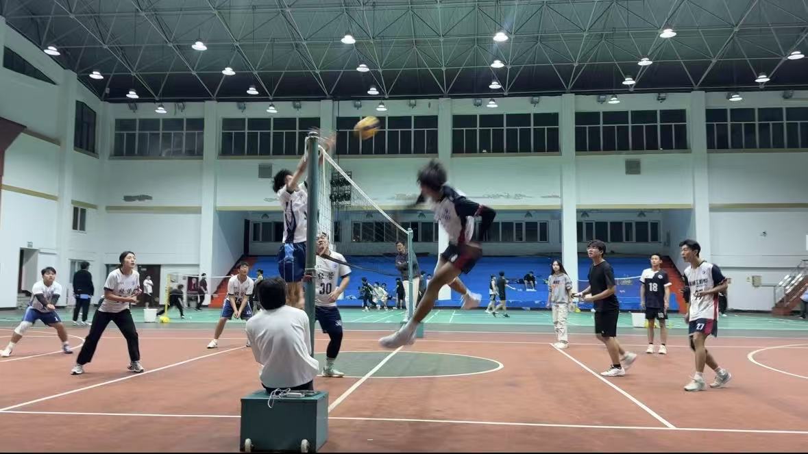 本次赛事规则要求各参赛队伍场上至少有两名女生。赛程分为小组赛与淘汰赛两个阶段,小组赛采用三局两胜制,淘汰赛则升级为五局三胜制。秉持“友谊第一,比赛第二”的宗旨,赛场上选手们相互尊重、切磋技艺,共同营造出积极向上的竞技氛围。在冠军争夺战中,精彩场面不断涌现,机械系的一名队员高高跃起,一记势大力沉的扣球,排球如离弦之箭般飞向对方场地,瞬间点燃全场气氛,关键时刻,经管系的队员上演飞身救球的精彩一幕,不仅成功救起险球,还顺势得分,其拼搏的精神赢得现场观众经久不息的掌声。比赛全程,观众热情丝毫不减,加油助威声此起彼伏,将赛场氛围一次次推向高潮,整个赛场充满了活力与激情。